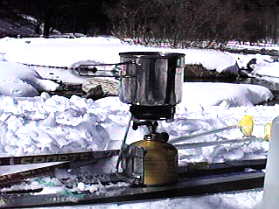 後からやって来て、近くに座ったカップルが缶ビールを雪の中に突っ込んで冷やしているのを見て、準備が足りなかったと反省。