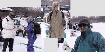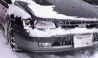 さて、朝起きたら頭の上は気持ちよい青空。朝食は途中のコンビニでサンドイッチでも買うことにして、それっと荷物を積み込んで出発したのですが、めざす方向には暗雲が。なんと、出発後5分で雪が降り出してきた。10分進んで上武国道のパーキングあたりまで来たら吹雪いてきて、みるみる道路が白くなる。とたんに流れがノロノロになり、これじゃぁいつ着けるか判らないなぁと思ったところに前のクルマが赤信号でブレーキを踏み、お尻を振ってストップ。